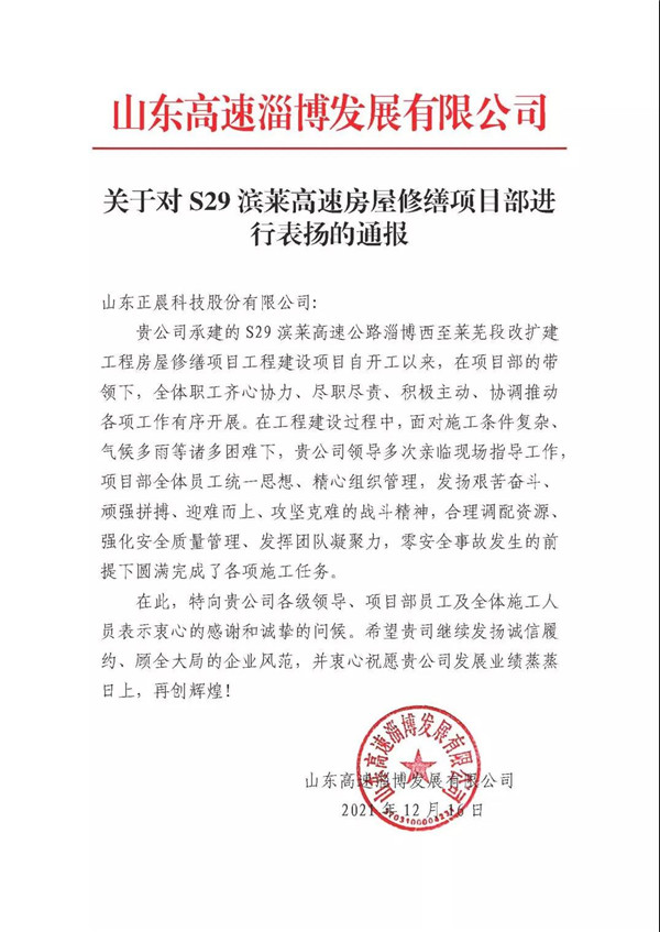 近日,乐动在线承建的S29滨莱高速公路淄博西至莱芜段改扩建工程房屋修缮项目获得业主表扬!