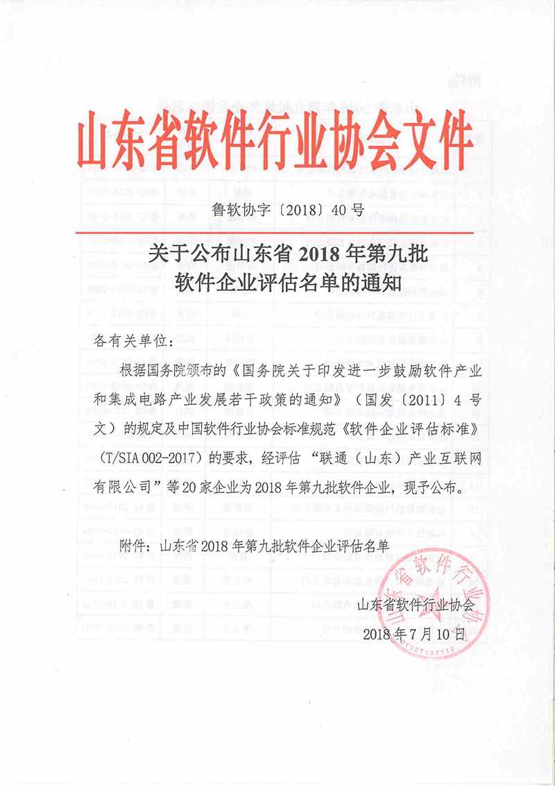 近期,根据国务院颁布的《国务院关于印发进一步鼓励软件产业和集成电路产业发展若干政策的通知》的规定及中国软件行业协会标准规范《软件企业评估标准》的要求,经过山东省软件协会的严格审查,乐动在线通过了软件企业认定的严格评审程序,被授予山东省2018年第九批软件企业。
