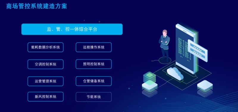 建设完整的信息化和自动控制等控制手段、健全商铺管理和数据分析,能够轻松的做到商场内部设备的良好运行,以达到最适宜程度,并针对商家入驻和管理有清晰、健全的管理制度。用以增加商场的综合竞争力。